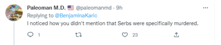 „Примијетио сам како нигдје нисте споменули да су искључиво Срби убијени“, пише у коментару, који је објављен на енглеском језику.