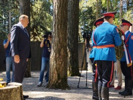 Вијенце су положили и изасланик предсједника Србије министар унутрашњих послова Србије Александар Вулин и министар рада, запошљавања, борачке и социјалне заштите Дарија Кисић Тепавчевић.