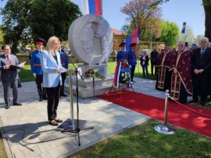 Она је навела да живот на крају увијек побјеђује, те да ће натпис на споменику посвећеном жртвама вјечно подсјећати на чињеницу да „класје Западне Славоније данас ниче у пољима и висовима Републике Српске“.