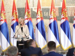 На крају обраћања, захвалила је за одликовање и честитала предсједнику и грађанима Србије Дан државности, уз жеље да Србија сваким даном све више напредује и да крупним корацима иде у будућност.