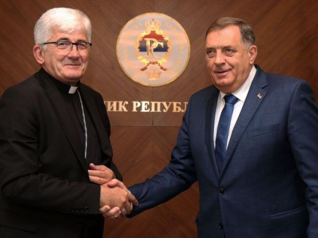 Бискуп Мајић и Милорад Додик Фото: predsjednikrs.rs Borislav Zdrinja