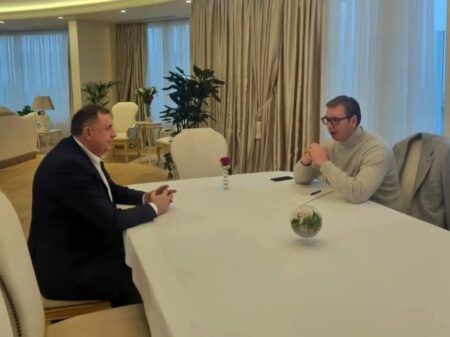– Увијек пријатељски разговор са предсједником Српске Милорадом Додиком. Договарамо се око многих пројеката и информисао сам предсједника Додика о Бриселском дијалогу. Такође, предсједник Додик је мене упознао са ситуацијом у Републици Српској и БиХ. Нека живе Србија и Српска! – истакао је Вучић у објави на Инстаграму.