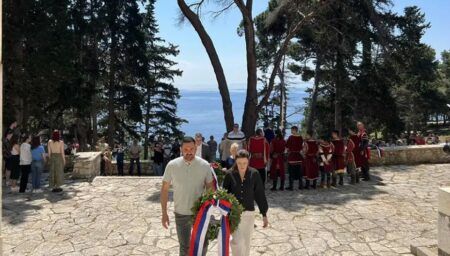 Министар за европске интеграције и међународну сарадњу Републике Српске Златан Клокић положио је данас вијенце на споменик српским војницима у маузолеју на острву Видо.