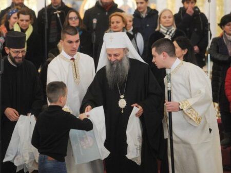 Патријарх Порфирије подијелио је данас у Саборном храму Светог Саве на Врачару 3.000 светосавских пакетића ученицима првог и другог разреда београдских основних школа.