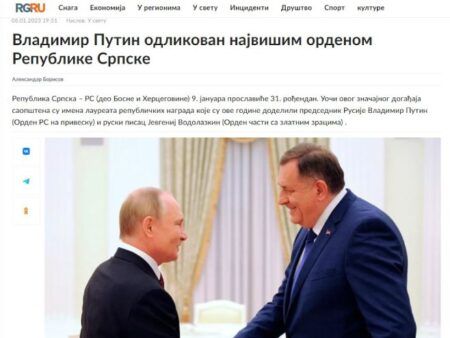 Подсјетимо, орден ће бити уручен накнадно, приликом првог сусрета Додика и Путина.